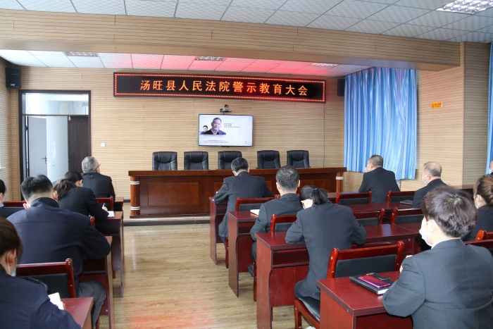 为进一步加强党风廉政建设和反腐败工作,建设忠诚干净担当的法院队伍,2月18日上午,汤旺县人民法院召开警示教育大会,会议由党组成员、副院长沈立群主持,党组书记、院长付洪涛出席会议并讲话,党组成员、各庭室负责人及全体干警参加会议。